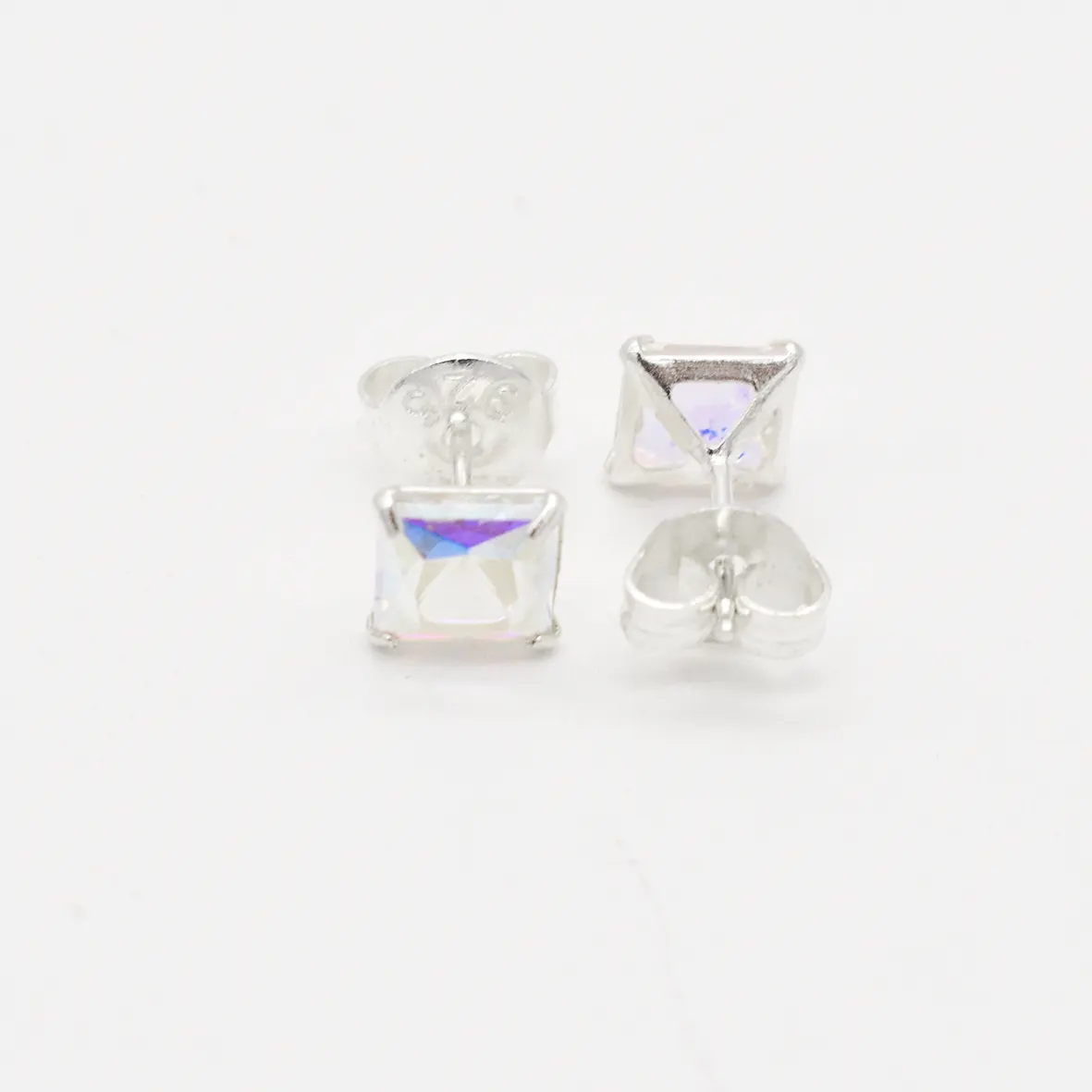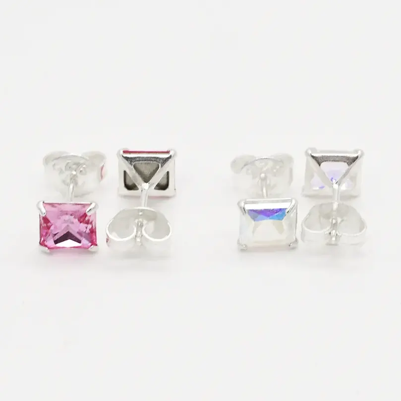 Ar pasantes cuadrado 7mm engarzace 4 puntas SW ZIRCONIA