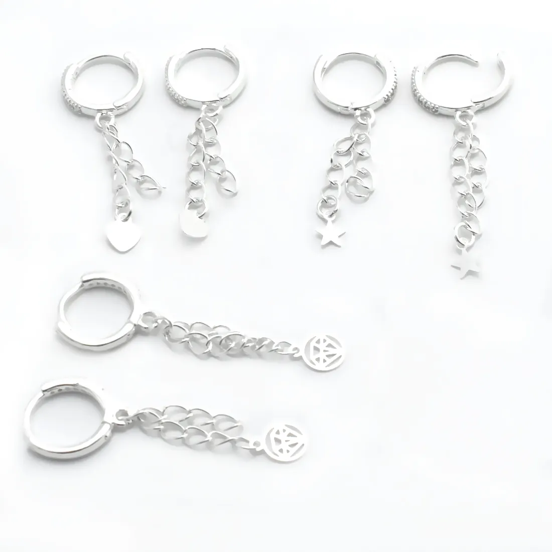 Aro cubano pave con cadena y dije plata 925