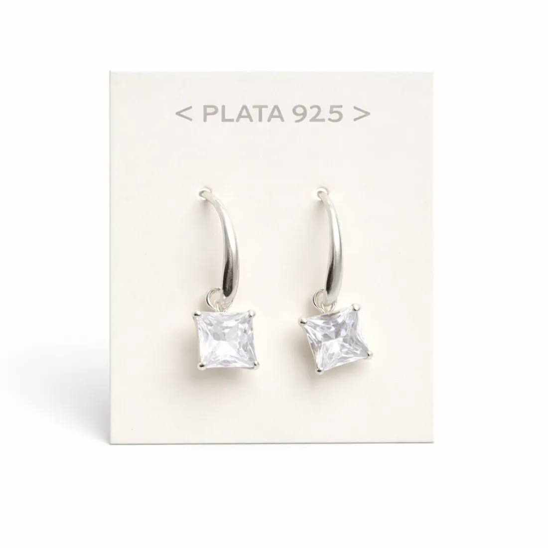 Aros colgante cuadrado sw 8mm detalle abanico plata 925