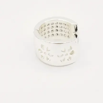 Aros cubano 4 líneas pavé y flores caladas 13mm acero blanco