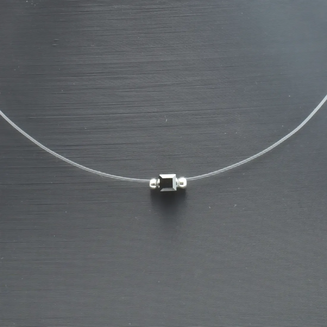 Collar 40cm sw cuadrado 4mm tanza c/ cierre y extensor plata 925