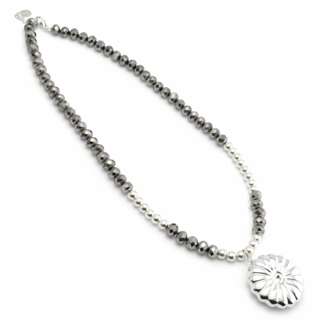 Collar cristales bolitas dije flor acero blanco