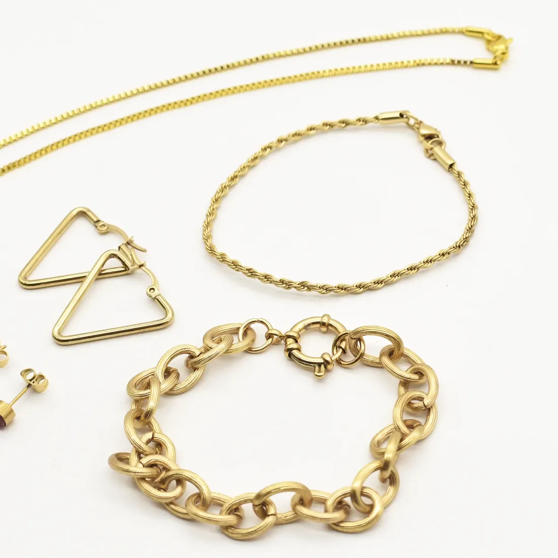 COMBO acero dorado: 2 - Pulseras 1 - Cadenas 2 - Aros 1 - Dije (LOS MODELOS Y COLORES DEL ESMALTADO y/o CRISTALES PUEDE VARIAR SEGUN DISPONIBILIDAD DE STOCK).