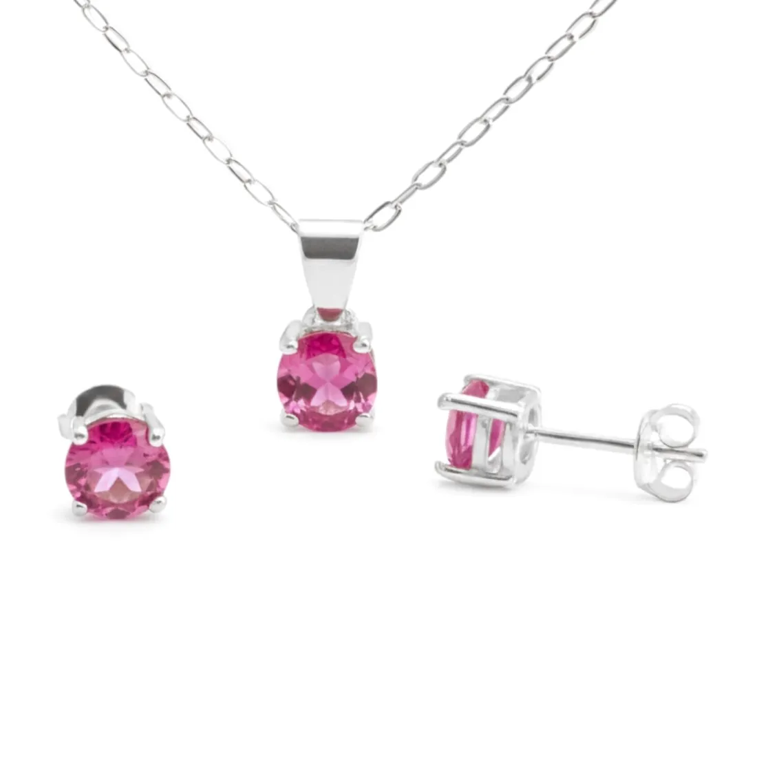 Conjunto cadena 50cm, dije y aros cristal 6mm plata