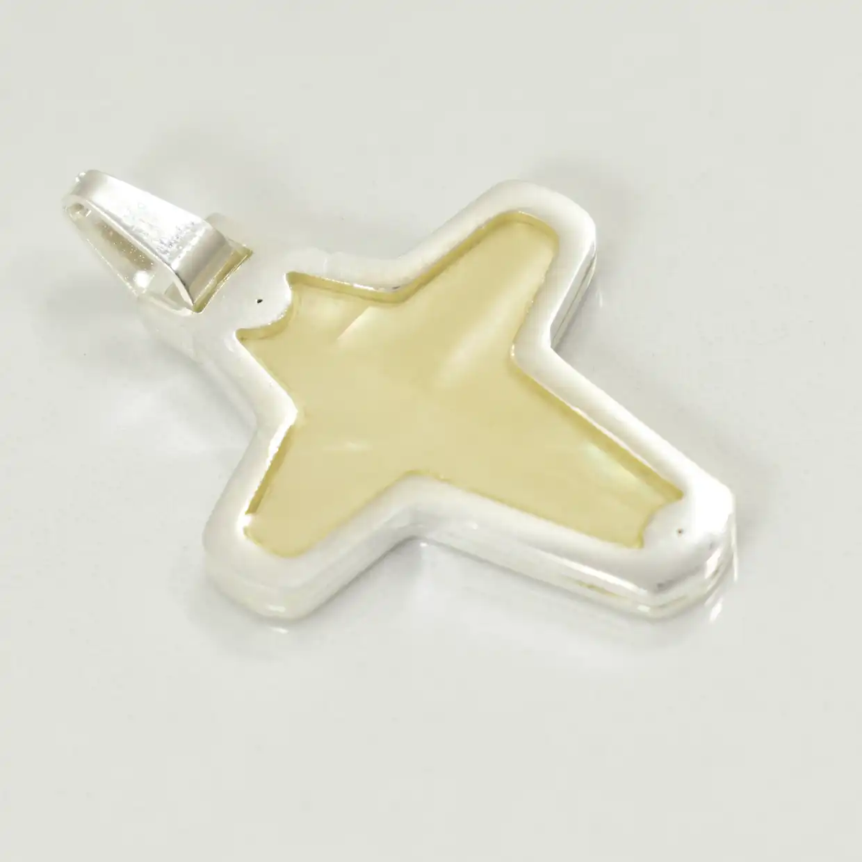 Dije cruz nacar 30mm acero blanco
