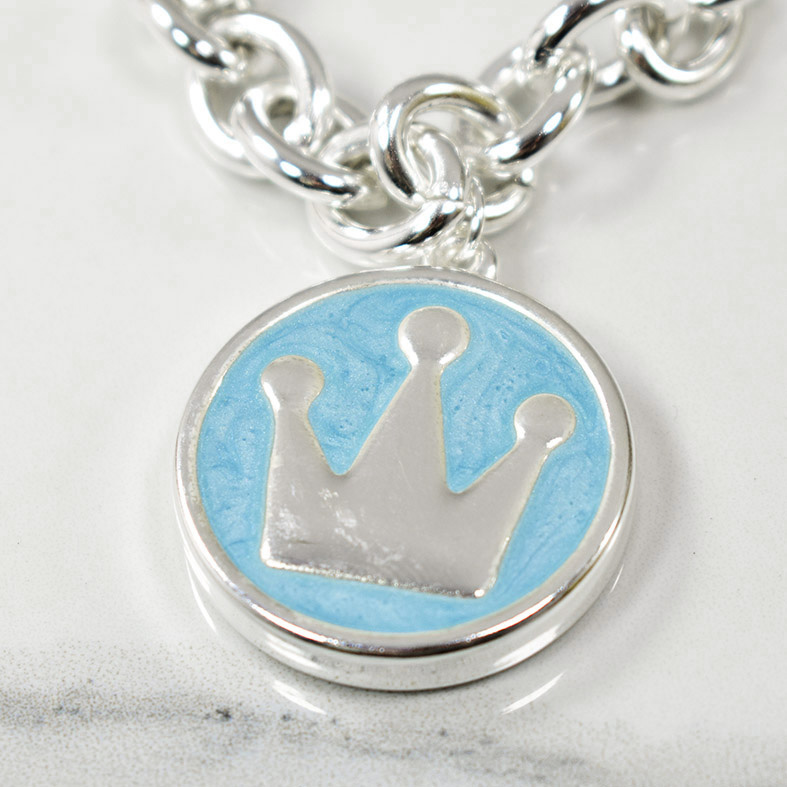 Pul con dije corona esmaltada celeste acero blanco