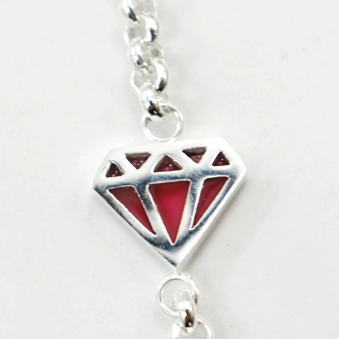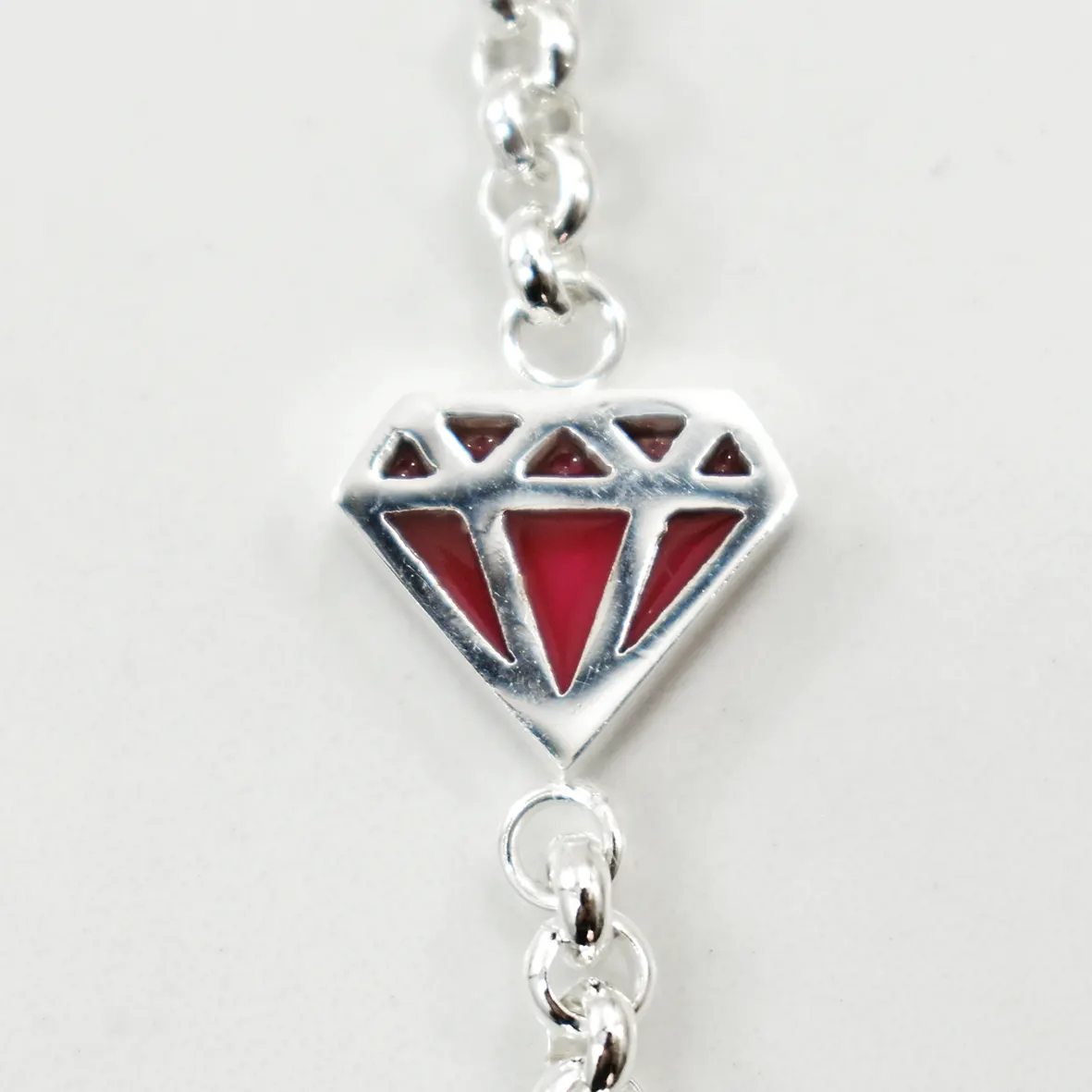 Pulsera acero blanco dije diamante centro rojo