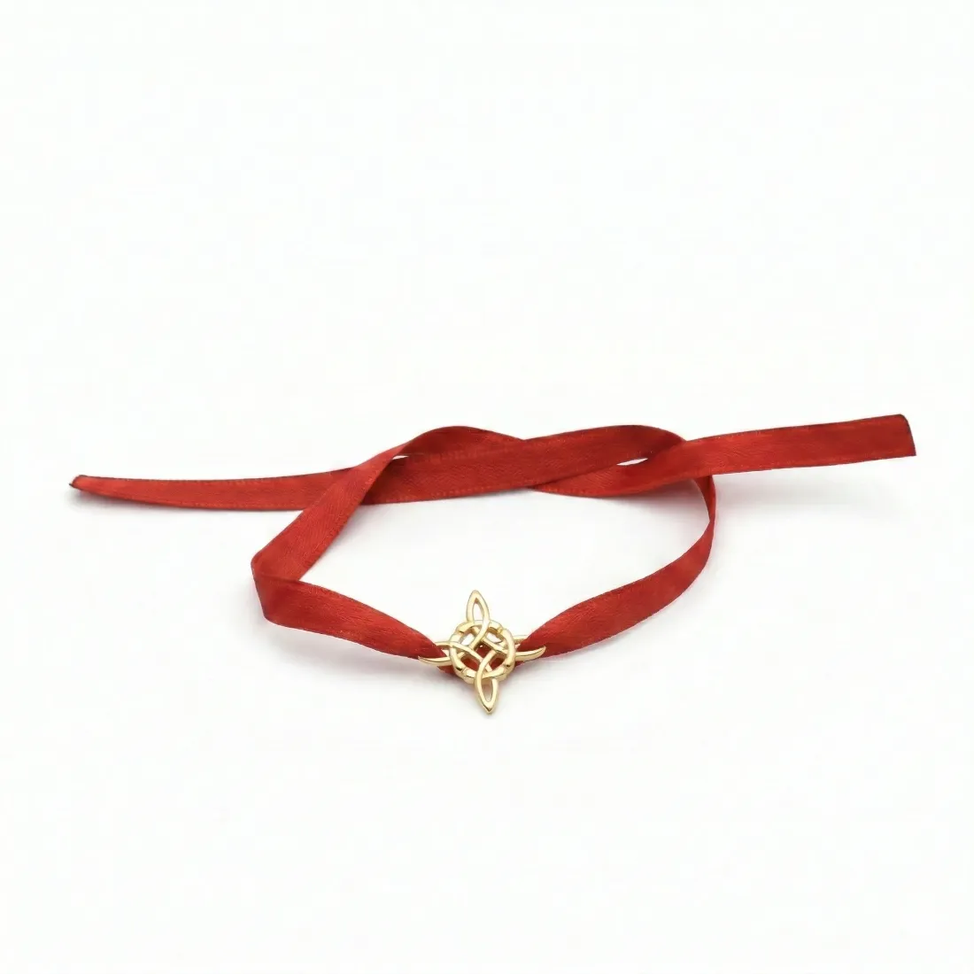 Pulsera cinta roja dije nudo de bruja enchapado en oro