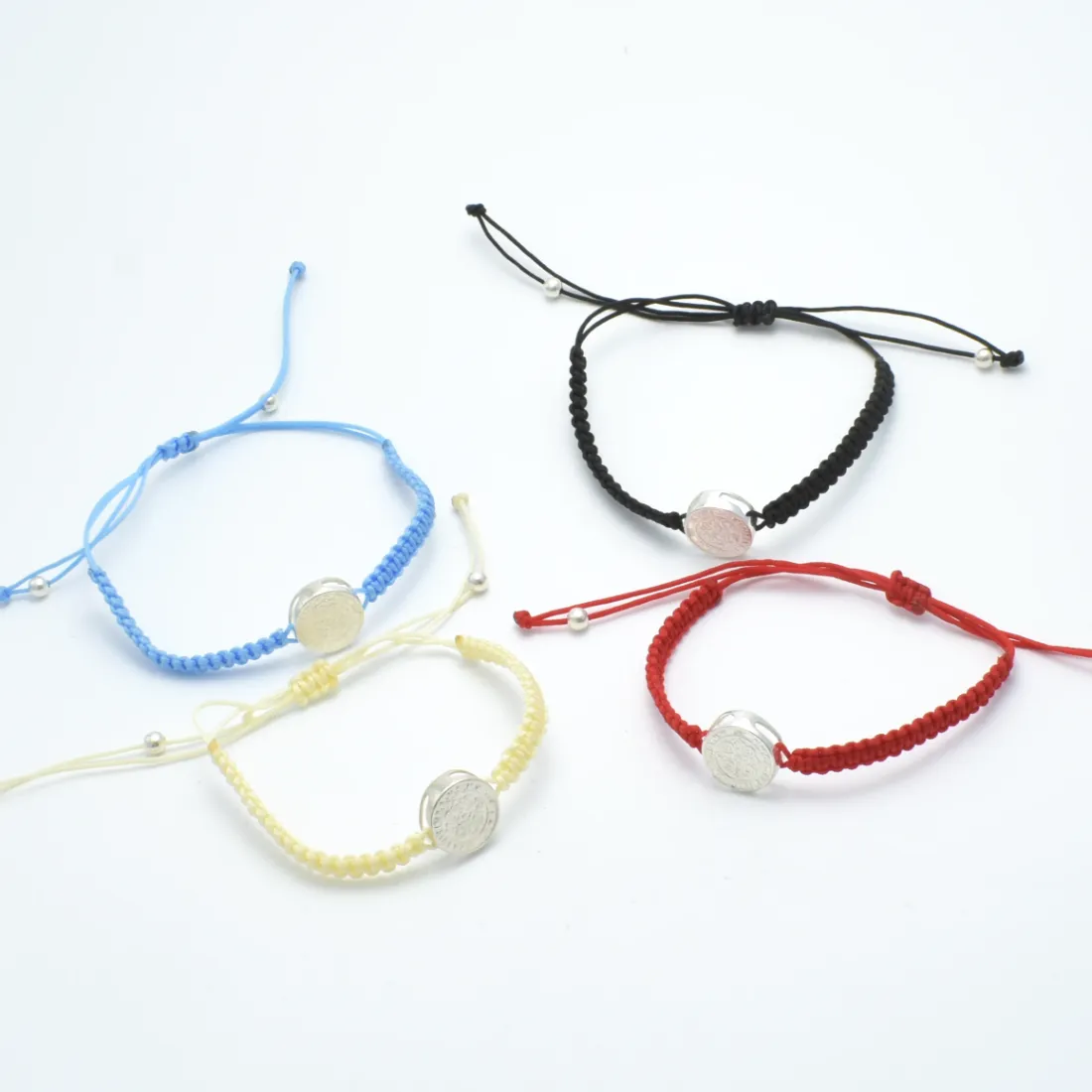 Pulsera macrame san benito hilo seda bolita 3mm plata 925