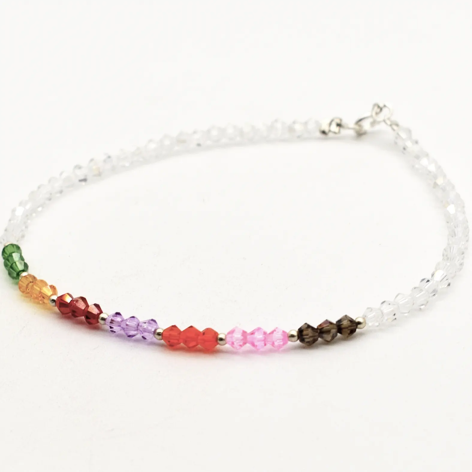 Tobillera cristales biconos con bolitas plata 925