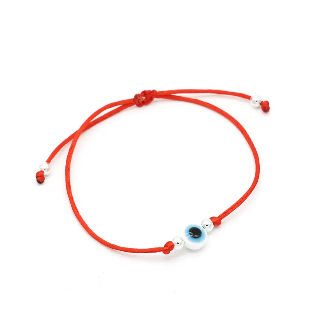 Tobillera macrame ojo turco y bolitas hilo simple plata 925